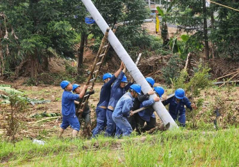 6月19日晚上,市投控集團下屬企業(yè)揭陽明利綜合能源發(fā)展有限公司落實上級工作部署,對接梅州市供電局,派駐先遣隊火速趕赴平遠縣泗水鎮(zhèn)開展抗災(zāi)搶險復(fù)電工作。先遣隊在道路受阻難行,存在山體滑坡等自然災(zāi)害風(fēng)險的情況下,克服了道路不通、河流阻道、淤泥厚重等困難,不怕艱辛,主動作為,在惡劣作業(yè)環(huán)境作業(yè)中,發(fā)揮國企在應(yīng)急搶修工作中展現(xiàn)責(zé)任擔(dān)當(dāng)和鐵軍精神,采取人工搬運電力物資、人工立桿等方式,通過多日連續(xù)奮戰(zhàn),6月27日上午圓滿完成支援梅州抗災(zāi)搶修復(fù)電工作任務(wù)。