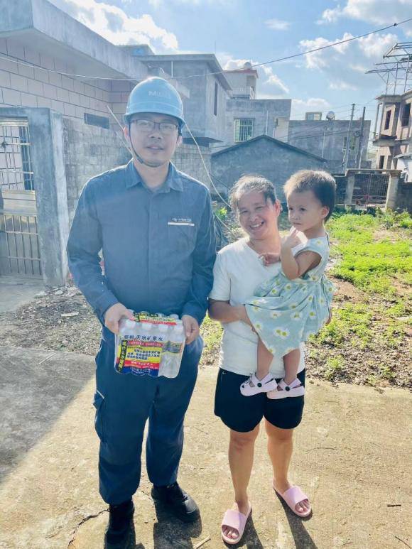 “這么熱的天你們還一直暴曬在太陽底下忙著幫我們通電,你們要多喝水防止中暑,要多吃點東西,不要餓著肚子干活”9月18日下午,在海南省澄邁縣金馬大道新村仔農(nóng)場的搶修現(xiàn)場,熱心的村民大姐左手抱娃右手提著礦泉水和八寶粥送到搶修人員的手中,搶修隊員跟大姐握手表示感謝。這一幕溫馨的場景,是公司搶修隊伍與當(dāng)?shù)厝罕姷摹半p向奔赴”,彰顯了電力施工企業(yè)與人民之間深厚的魚水情誼。在困難與挑戰(zhàn)面前,他們攜手并肩,共同譜寫了一曲動人的贊歌。